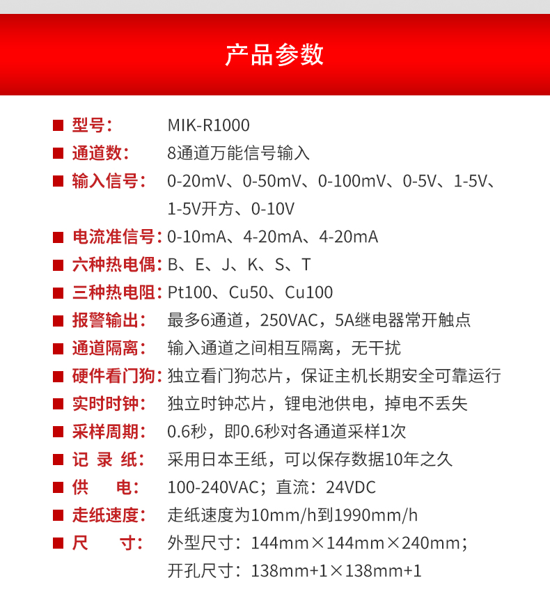 美控MIK-R1000 1-8路 灭菌 有纸记录仪/灭菌值/曲线记录检测仪特点
